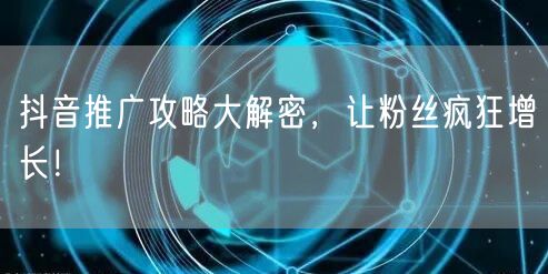 通过以上抖音推广攻略的解密,相信你已经掌握了如何在抖音上实现粉丝疯狂增长的技巧。记住,有效的推广策略需要不断尝试和优化,持续关注用户需求和平台变化,才能在抖音上取得更好的成绩!