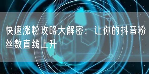 随着抖音平台的快速发展,越来越多的人开始关注如何快速提升抖音粉丝数。本文将为你揭秘涨粉攻略,带你探索有效的涨粉技巧,让你的抖音粉丝数直线上升。
