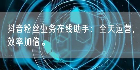 抖音粉丝业务在线助手是抖音业务推广的得力助手。它能实现全天自动化运营,提升业务效率,帮助你轻松增加抖音粉丝。如果你正在寻找一款高效的抖音粉丝增长工具,不妨试试这款在线助手,让你的抖音业务更上一层楼。